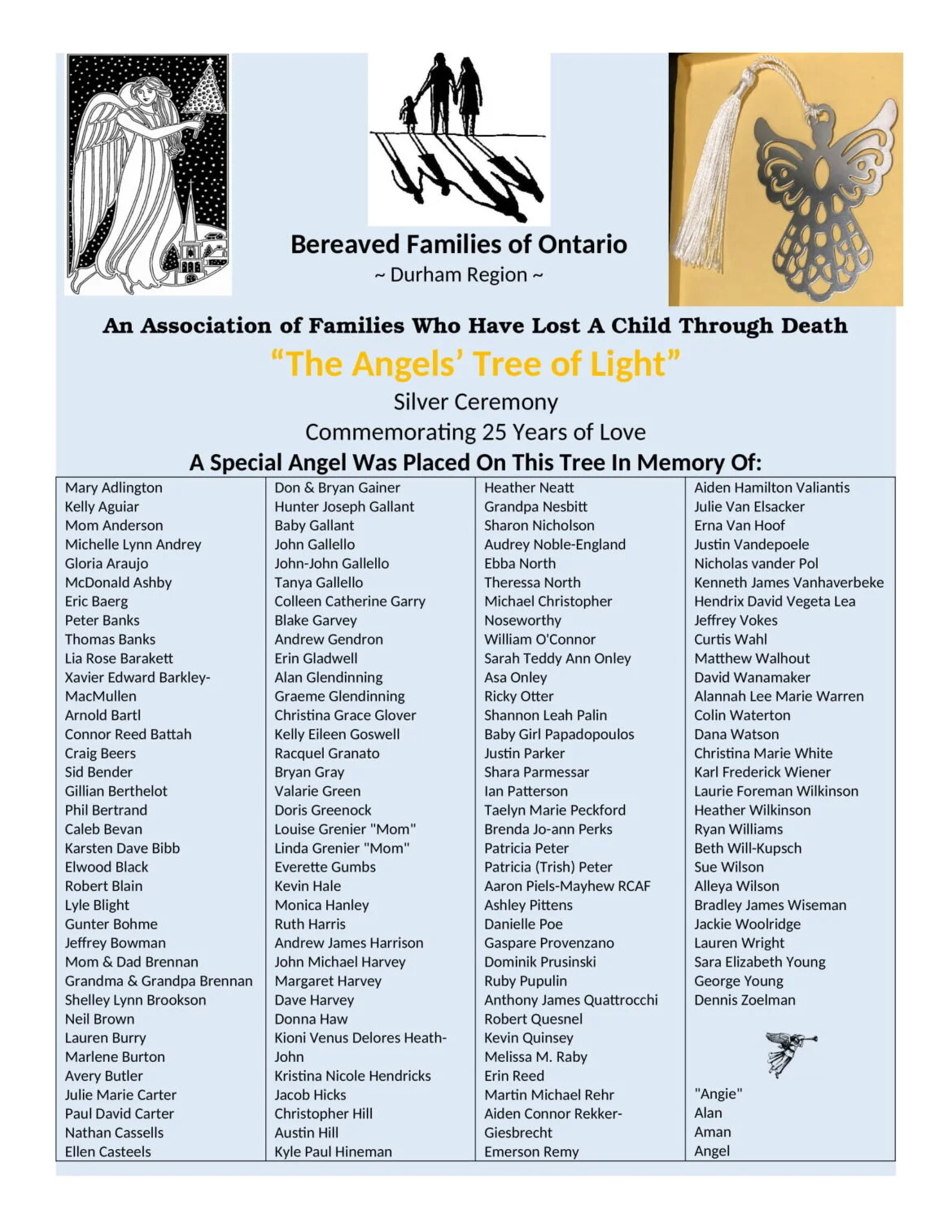 25th Anniversary Angels’ Tree Ceremony Printable Booklet