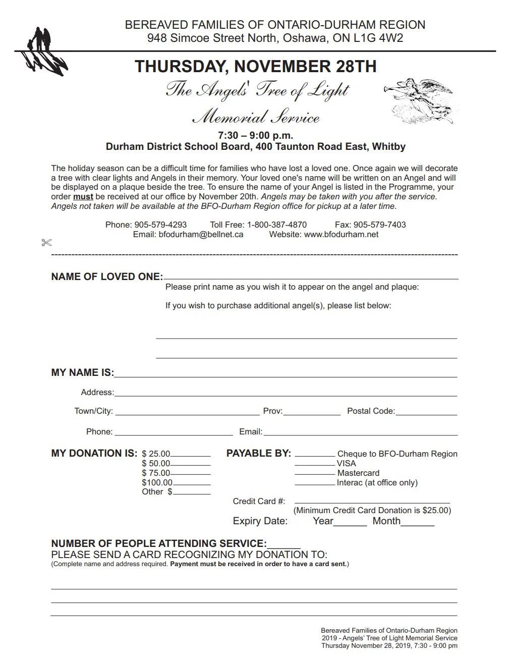 Angels may be taken with you after the service. Angels not taken will be available at the BFO-Durham Region office for pickup at a later time.